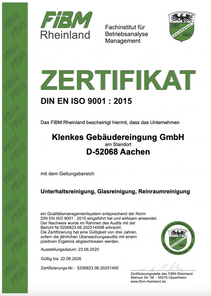 Klenkes Gebäudereinigung Aachen ist ein führender Anbieter von Gebäudereinigungsdienstleistungen in der Region Aachen und Umgebung.